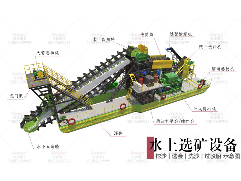 150-200立方挖沙選金洗沙過駁船-全自動選礦離心機版