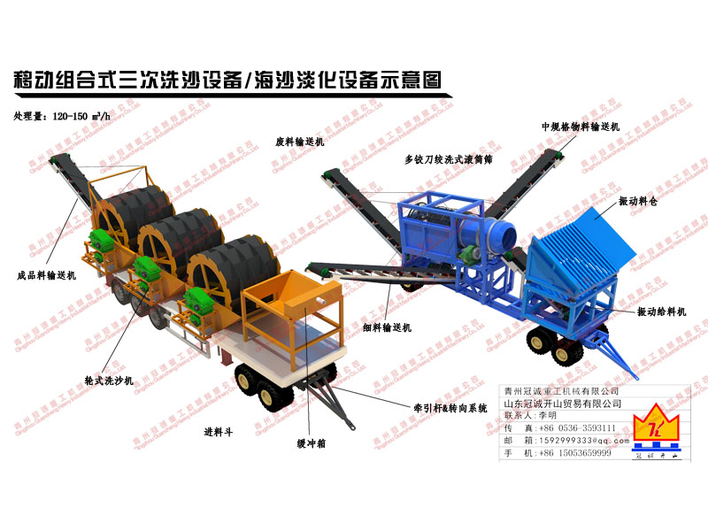 每小時120-150立方處理量移動組合式三次洗沙設備/海沙淡化設備