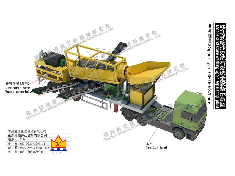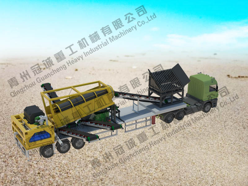 移動式篩沙水洗選金設備移動方便,操作簡單,篩沙、水洗、選金一次完成,加載冠誠重工生產的臥式全自動排礦離心機精選,精選后的精料會由精料管道自動排出;廢料由廢料管道自動排出。